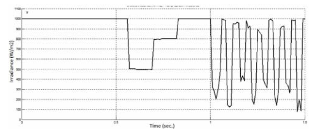 The fluctuation of the output power of PV systems is one of the main factors that may cause severe operational problems for the utility network. Power fluctuation occurs due to variations in solar irradiance caused by the movement of clouds and may continue for minutes or hours, depending on wind speed, the type and size of passing clouds, the area covered by the PV system, and the PV system topology. Power fluctuation may cause power swings in lines, over- and under loadings, unacceptable voltage fluctuations, and voltage flickers [1].