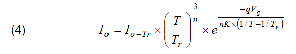 where the saturation current, Io, at different operating temperatures can be calculated [16], thus:
