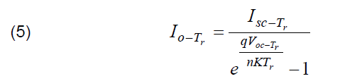 In (4) and (5), Vg is the band gap voltage, Voc-Tr is the open circuit voltage, and Isc-Tr is the short circuit current at the rated operating conditions.