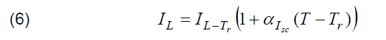 The photocurrent IL, in (3) is directly proportional to the solar radiation level, G (W/m2), and can be expressed as