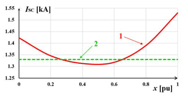 (ii) issue 2 – the increase in the value of short-circuit current flowing through the transmission line in case of external SCs, consequently, the non-selective tripping of RP is possible (disconnection of non-damaged transmission line, as a result cascade shutdown of other transmission line is possible).