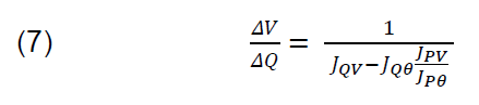 The equation 7 is a sensitivity of voltage to an injection of reactive power at a bus has on various parameters. The SVC device can enhance the voltage stability by injected or absorbed reactive power, the voltage sensitivity used for optimal location of the SVC devices [12].