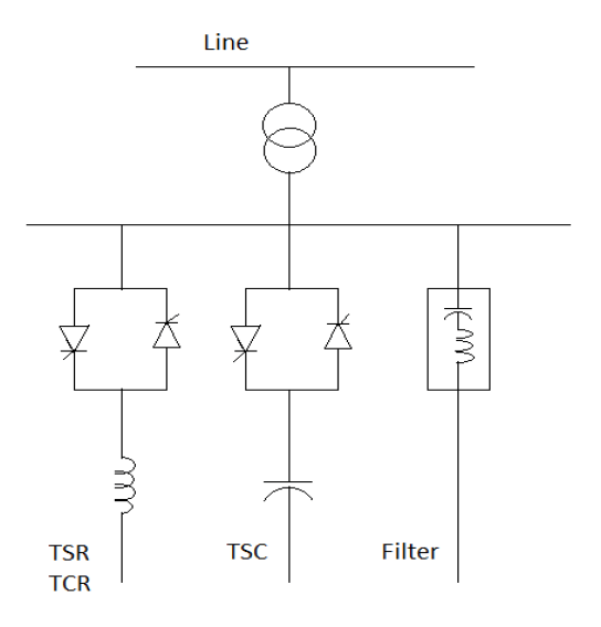 SVCs are a shunted type of FACTS controller and is a Static Var absorber or generator whose output is adjusted to exchange inductive or capacitive current to maintain the bus voltage. SVCs consist shunt reactors and capacitors,[15] which are controlled by thyristors as shown in the figure 2.