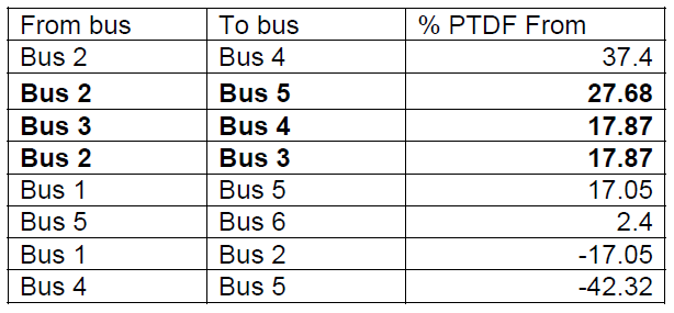 Table 1. PTDF when line 2-4 overloaded