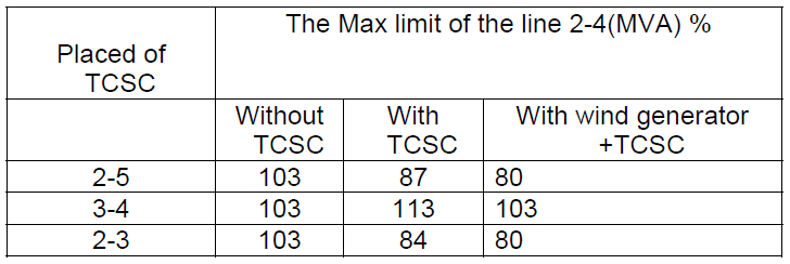 From the table 2, it is indicated the overloaded of line 2-4, after placed TCSC, and TCSC with wind generator together, the two cases explain as following: