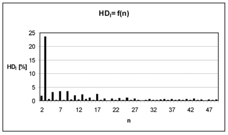 Figures 4-5 show high values of HD factor for individual harmonics, which demonstrate the diverse nature of the work, depending on the selected mode of operation.