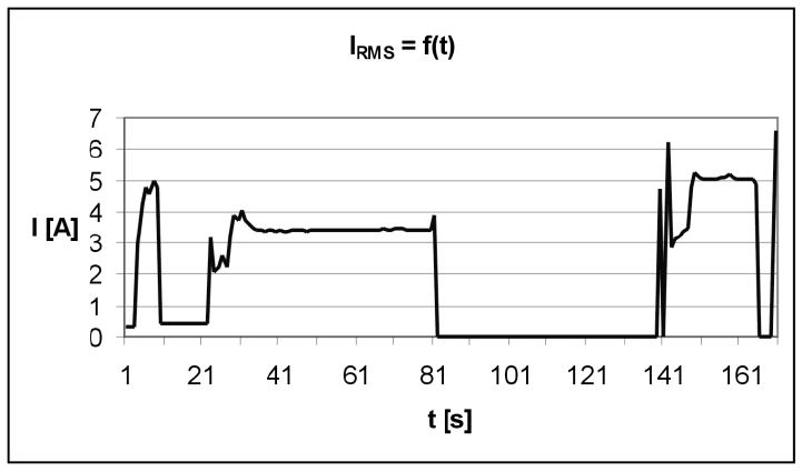 Figure 9 shows a course of rms current value of laminar chamber during 170 seconds of work.