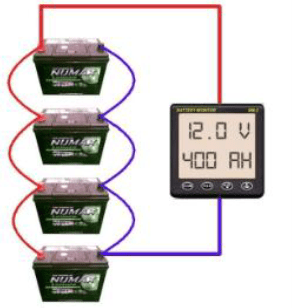 Figure 9 shows four batteries each one of (12V , 100Ah) connected in series and figure 10 obvious these four batteries connected in parallel.