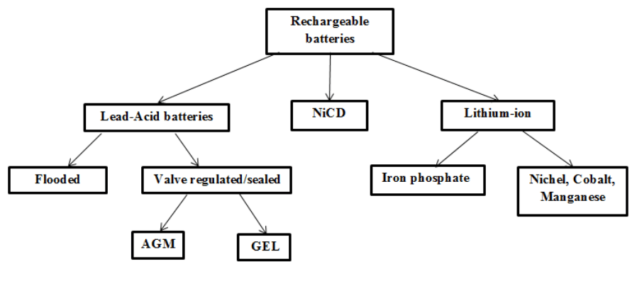 Keywords: Flooded batteries, Gel batteries, AGM batteries, Lithium batteries, Electrical models of batteries, Battery energy, Series and parallel connection of batteries