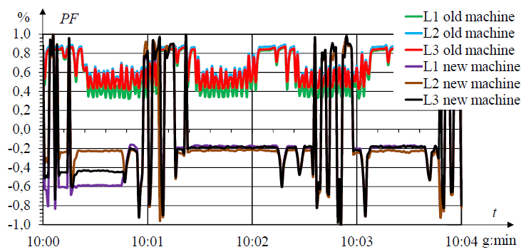 The use of the newer machine for steel cutting entails higher dynamics of changes in power coefficient (Fig. 13).