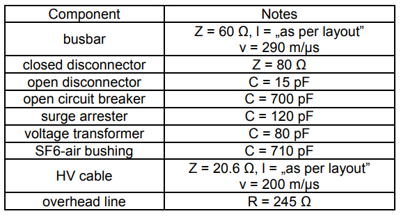 Very Fast Transients are characterized by rise times in the range of 4-100 ns. Thus, it has to be modeled as an appropriate distributed and lumped elements. The travelling nature of VFT forces one to use appropriate values of surge impedances with associated wave propagation speed and element length as well as phase-to-ground capacitances [4]. Detailed description have been presented in Table 2.