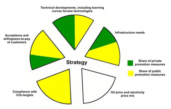 – The scope of the supporting political actions considered in the framework conditions will be broadened. In the studies analyses about financial incentives dominate. However, beside financial support, also different research funding schemes, infrastructure investments, special e.g. priority rules for EV, and information and awareness campaigns for electromobility have to be included.
