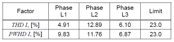 Table 2. THD and PWHD factors of current compared to the limits specified in [6]