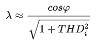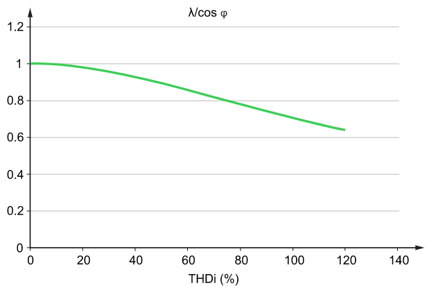 Figure M6 shows a graph of λ/cosφ as a function of THDi, for THDu ~ 0.
