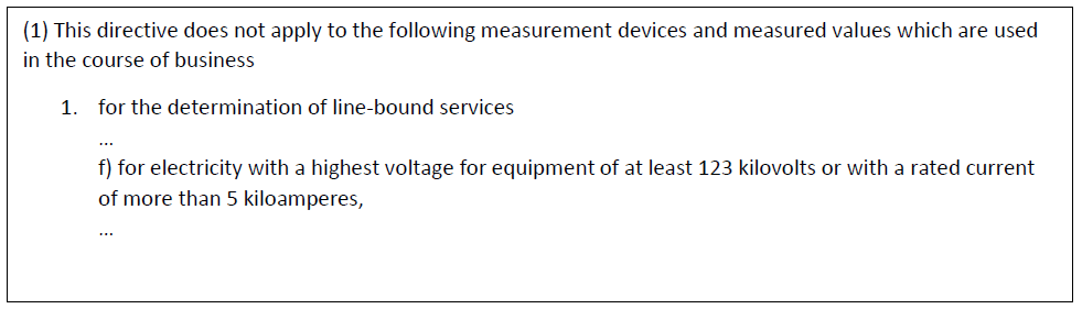 In the current Measuring and Calibration Directive (MessEV)3, an important note can be found on page 8 of 76 under § 5 with the heading “Uses excluded from the scope of application”.