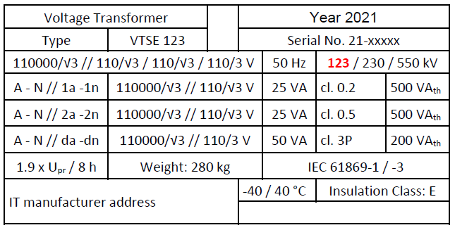- The primary side of the instrument transformer (here the bushing) is also specified for insulation coordination with Um ≥ 123 kV.