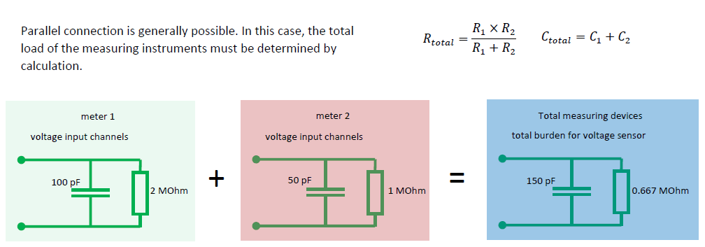 880.680 kOhm. In principle, it is also possible to operate meters in parallel. In this case, only the total impedance must be calculated. A value above 250 kOhm is generally considered as feasible.