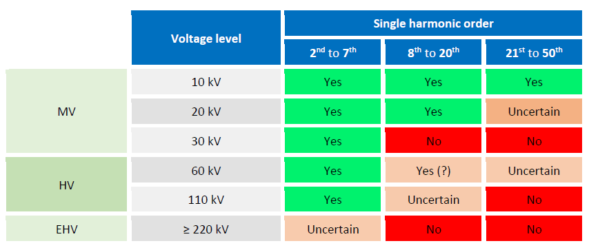 Table 1: Suitability of inductive transformers for harmonic measurements