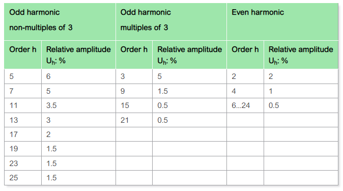 The most significant harmonic orders in three-phase distribution networks are the odd orders (3, 5, 7, 9, 11, 13 ….)