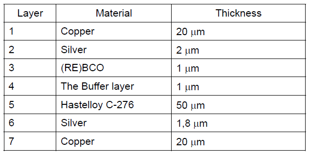 Endurance of the SCS4050 tape for thermal failure depends on distribution of the current’s density in each layer at resistive condition. The construction of the tape are shown in Table 3.