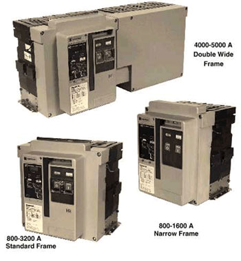 For power circuit breakers, typical continuous current ranges are 800 A–5000 A, typical voltage ranges are 240 V–600 V and typical short-circuit-current ranges are 40 kA–100 kA. Figure 5 shows representative low-voltage power circuit breaker frames.