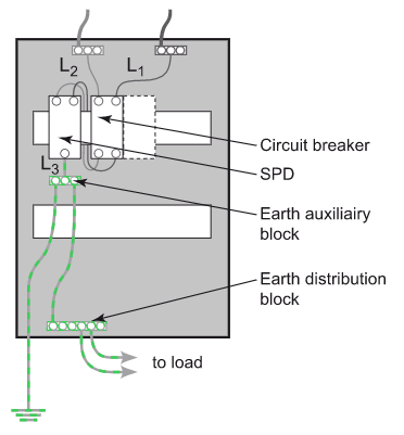 In the case of a switchgear assembly in a metallic enclosure, it may be wise to connect the SPD directly to the metallic enclosure, with the enclosure being used as a protective conductor (see Fig. J40).