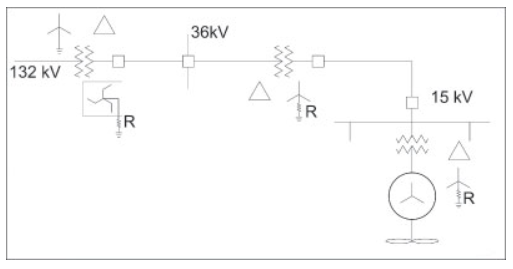 The generators can be ungrounded, high-resistance grounded, low-resistance grounded or solidly grounded. In solidly grounded generators, very high fault currents can flow in the event of a phase-to-ground fault with a possibility of extensive fault damage[4]and consequential loss of revenue. In addition, there is a possibility of high harmonic current flows when the generator and step-up transformers are solidly grounded. Applying low-resistance grounding reduces the potential damage due to phase-to-ground faults, but the generator must be tripped and isolated with a consequential loss of revenue. With high-resistance grounding, a phase-to-ground fault can be annunciated[4]and the generator kept running. An ungrounded generator can be used if the cable length to the step-up transformer is relatively small. With long cable lengths in multiple generator systems, the generator to transformer section becomes susceptible to transient overvoltages in case of intermittent phase-to-ground faults. This could lead to subsequent 2ndphase-to-ground failure elsewhere in the network leading to catastrophic damage.