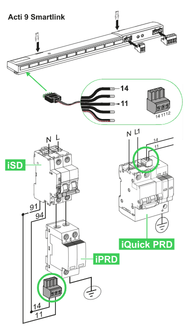 iQuick PRD SPD is fitted with an indication contact which allows remote reporting of: