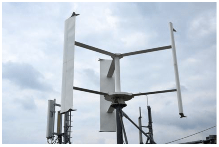 The cross-section area of the rotor (wind circle) is 30 m2, with the blade height of 6 m and the rotor diameter of 5 m. A blade cross-section is a symmetrical assembly of standard airfoils type NACA 0021. A wind turbine of the type investigated in the paper is presented in Figure 1.