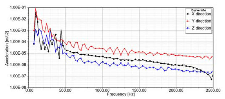 where Mu is the structural mass matrix, Cu is the viscous damping matrix, Ku is the stiffness matrix, ü , u̇ , u is the nodal acceleration, nodal velocity and nodal displacement vector, respectively. fe is the spectrum of force from the electromagnetic simulation as load force.