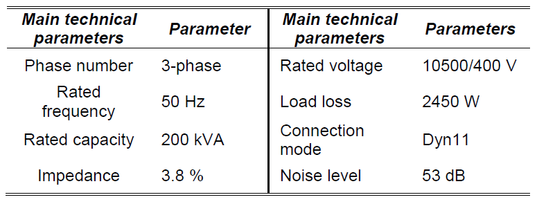 Table 1. Main technical parameters of the analysed oil-type transformer.