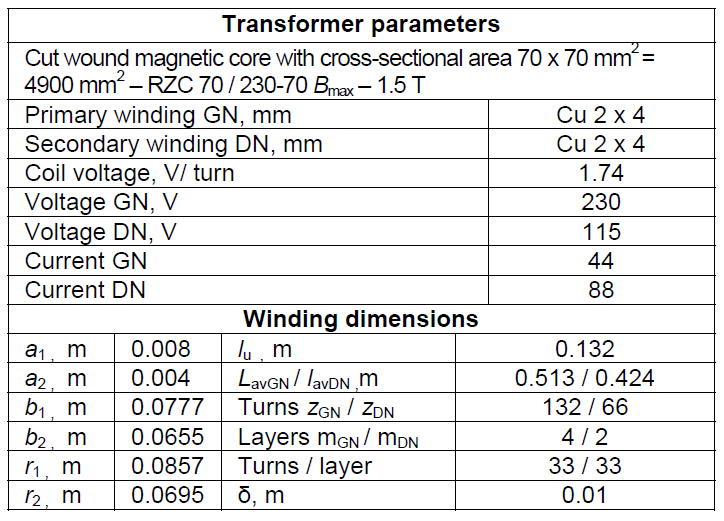 Table 1. Parameters for a transformer model with conventional Cu windings [16].