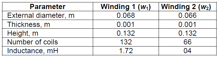 Table 2. Parameters for superconducting coils composed of two independent windings w1 and w2 made of HTS 2G SCS4050 [16]