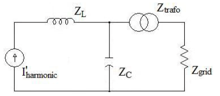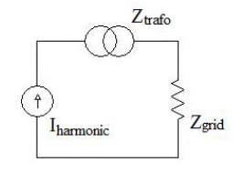 Therefore, the harmonic current spectre will be recalculated according to equation (1). The harmonic current injection, modelled as illustrated in Figure 4, will be modified according to Figure 5. Zgrid is the short circuit impedance at the 34.5 kV bus.