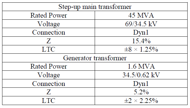 The electrical components parameters of the simulated wind park were obtained from commercial wind farms, manufacturer engineering catalogue and electrical standards. Electrical cable and transformer’s characteristics are presented in Tables II and III, respectively.