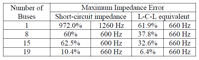 In [4], the author suggests a system equivalent which is based on the prominence of low order resonances. It represents the system impedance with an L-C-L equivalent circuit, estimated from short-circuit impedance and the first two resonant frequencies, i.e. parallel and series.