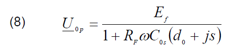 where: U0p – zero sequence measured voltage, EF – phase voltage of a network, RF – fault resistance, C0s – earth fault zero sequence capacitance, ω – angular frequency, d0 – damping coefficient of zero sequence impedance described as a ratio of zero sequence conductance and zero sequence susceptance (9), s – detuning coefficient of Petersen coil (10).