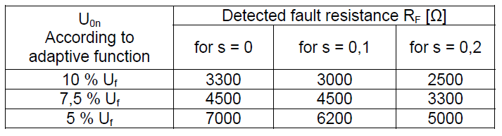 Table 1. Values of fault resistance detected by YY0 relay with adaptive function