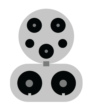 The CCS connector (also known as SAE J1772 combo) is unique because a driver can use the same charge port when charging with AC Level 1, Level 2, or DC fast charging equipment. The only difference is that the DC fast charging connector has two additional bottom pins. Most EV models entering the market today can charge using the CCS connector.