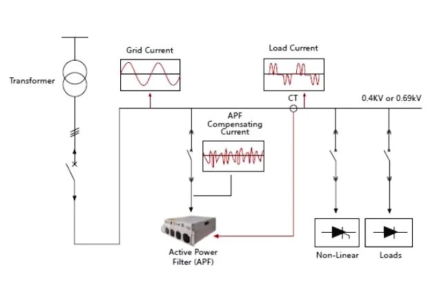 Harmonic filters may include different types of circuits or components designed to reduce harmonic currents, such as combinations of capacitors, inductors, and other components. Harmonic filters are typically classified as passive harmonic filters and active harmonic filters.