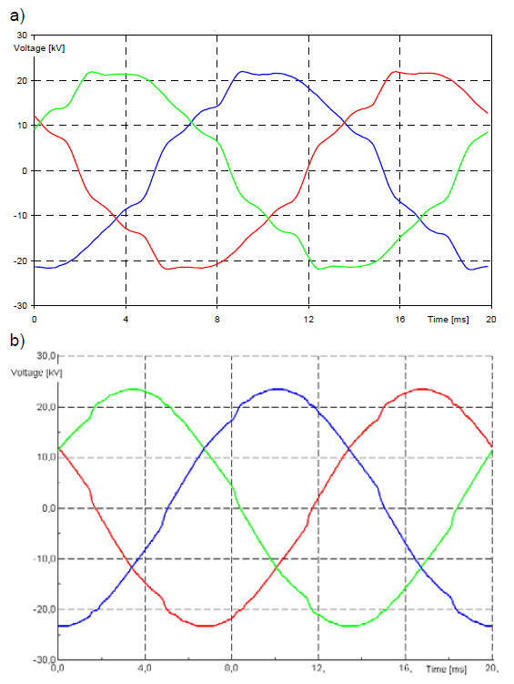 The voltage and current waveforms in a power grid sometimes significantly diverge from a sinusoid. Current distortions most often result from a non-linearity of loads. Distortions in voltage waveforms result from a distorted current flowing through the supply network, from switching processes and resonance phenomena. An increased content of higher harmonics in the voltage is also affected by the fact that “distorting” (non-linear) loads are supplied with already distorted voltage. This also leads to an additional (secondary) distortion in their current waveforms and, in consequence in the voltages in the supply network. An increased content of harmonics is also affected by the asymmetry of the supply voltage.