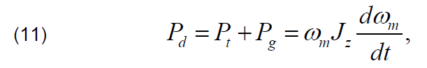 where: Pg – generator power; Pt – wind turbine power. The reduction of Pg power without reducing the Pt power will cause the rise of surplus power in the system. This surplus power will cause the increase of the angular rotor speed of generator from ωm to ωmk which can be found as [7]: