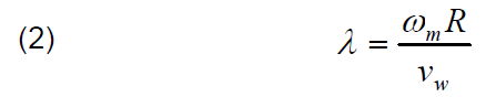 The wind turbine power coefficient Cp is a nonlinear function of tip speed ratio λ and blade pitch angle β. The tip speed ratio can be shown as [6]: