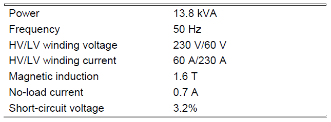 Table I. Transformer’s nominal data