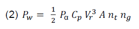 The wind power output (Pw) in (kW) is specified by the following relation in equation (2), where (pα) is the air density ≈ (1.22 kg/m3), (A) is the swept area of wind turbine rotor in (m2), (Vr) is the velocity of wind in (m/s), (Cp) is the wind turbine power coefficient, (ng) is the efficiency of wind generator and (nt) is the efficiency of wind turbine.