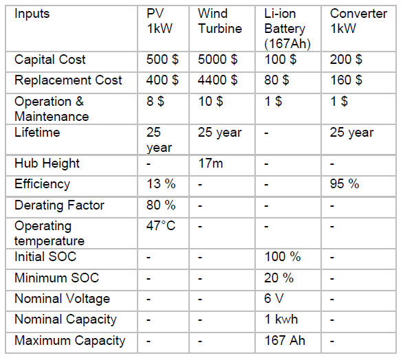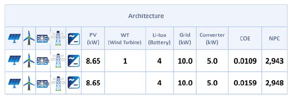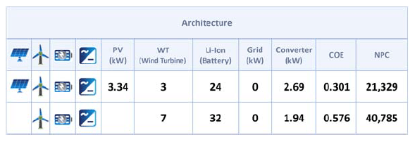 HOMER simulates all the achievable solutions for the system, then shows a list of all feasible system patterns planned gradually from lowest to highest in NPC (Net Present Cost) and excludes all the infeasible configurations. HOMER use a proprietary derivative-free algorithm to exploration for the optimum solution among all these feasible systems. The least NPC is the optimum design for the system [18],[19],[20].