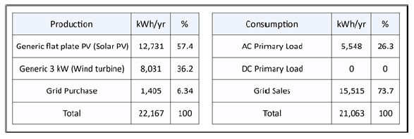 The following relation in equation (5) determines the total annual power output in (kWh) obtained from the renewable hybrid system (HE) that denotes to the sum of PV power (SE) and WT power (WE) [14]: