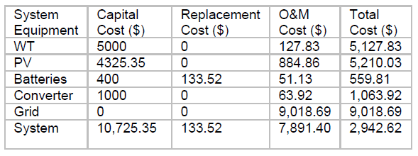 Table 2. Cost Optimization Analysis for the System