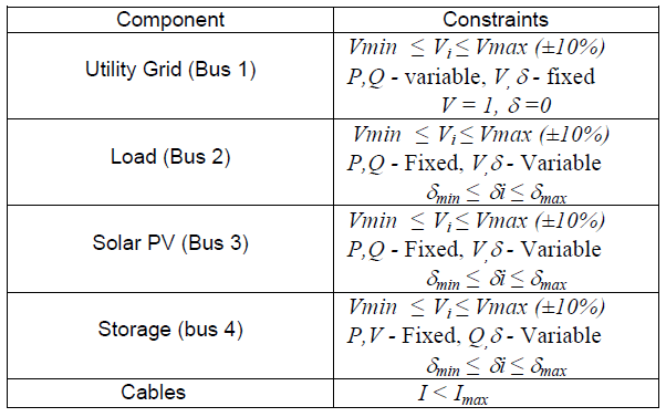 Storage is modelled as a PV source [2] and since the time dimension is involved with the operation of storage, a dynamic approach to its modelling is used as described in [2].