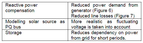 Figure 6 makes a comparison of the reactive power demand from the grid with capacitor bank connected and disconnected from the bus. It can be seen that the demand for reactive power is higher without compensation than with compensation. This is because a part of the reactive power demand is provided by the capacitor bank.